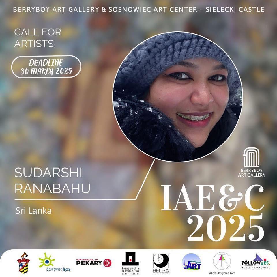 Among the participating artists was me, representing Sri Lanka on this prestigious international stage. My contribution stood alongside works by notable creators such as Egidijus Dapsas (Lithuania), Nijole Jovarien Ozi (jewelry, Poland), Gabriel Isina Cuisinaite (experimental painting, Lithuania), Lina Nikolaev (graphic artist), Irina Santokian Par (painter), and Sita Tarasevicin (painter), among many others.